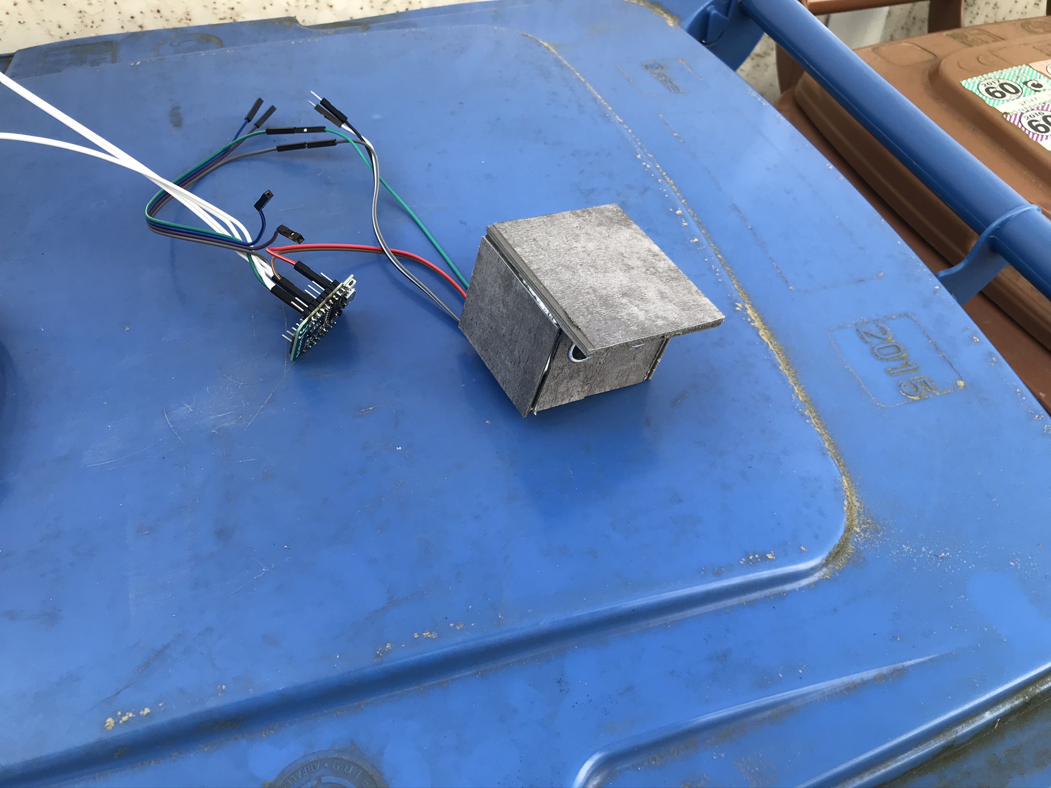 Mit dem ersten Prototyp bin ich schonmal ganz zufrieden. Das Ganze habe ich in Openhab zusammengeführt, da hier einfacher zu programmieren ist und man etwas mehr Möglichkeiten hat. Der endgültige Sensor wird mir dann aber in Homekit angezeigt ist aber nur dann geöffnet, wenn morgen Abfuhr ist und die Tonne noch da steht (Sensor meldet über 50cm).