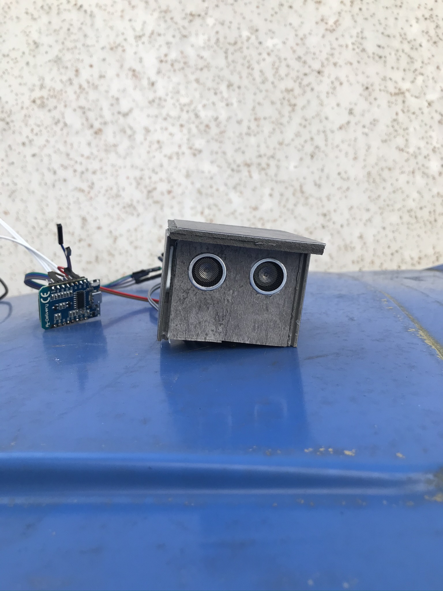 Basis ist ein ESP8622 Chip der auf Tasmota geflasht ist. Ich habe diesmal ein Wemos D1 Mini genutzt, der ist einfach am billigsten. Daran angeschlossen einen Ultraschall-Sensor. (Bin übrigens total begeistert von dem Ultraschall, misst Entfernungen auf 1cm genau bis 2,5m. )