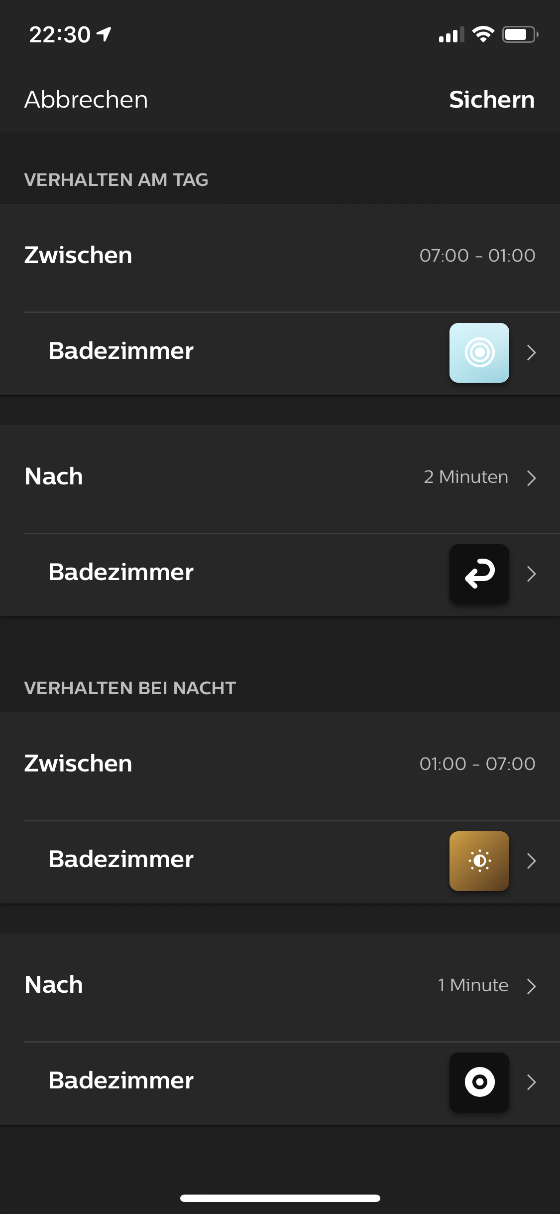 ich möchte gerne HUE 2 Lampen per Bewegungssensor einschalten lassen: