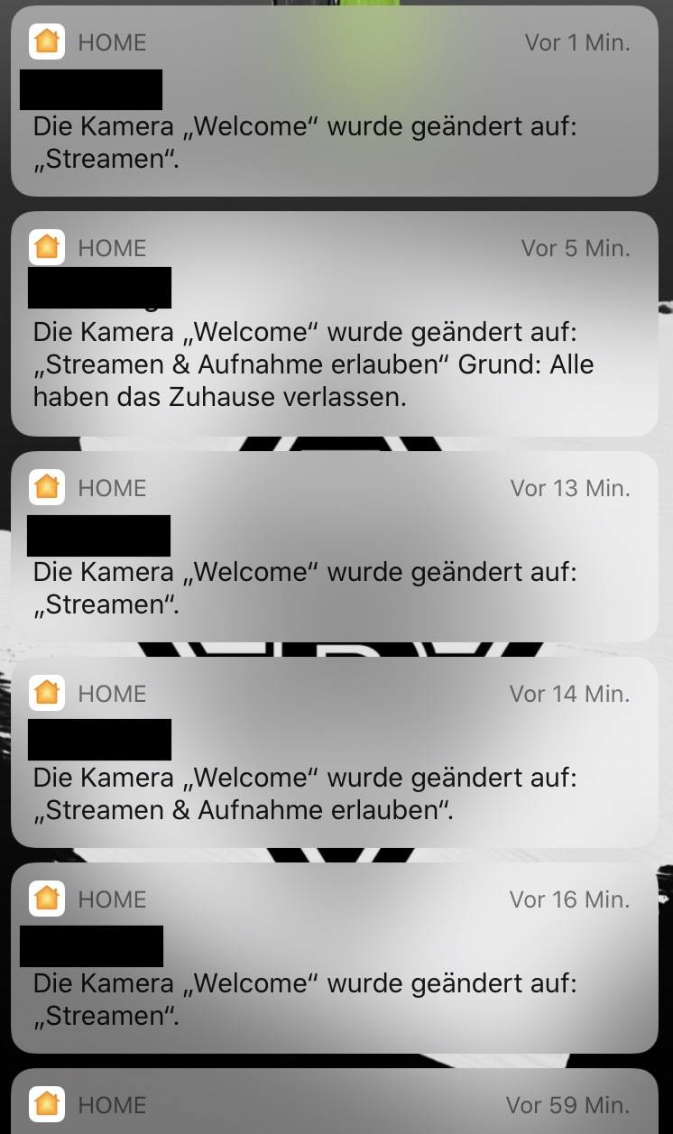Bekomme unterwegs immer wieder Push-Meldungen, dass der Status (zwischen "Streamen" und "Streamen und Aufnehmen") sich geändert hat, obwohl niemand zu Hause ist. Normalerweise bekam ich morgens nach dem Verlassen des Hauses die Meldung, "Streamen und Aufnehmen" - alle haben das Zuhause verlassen - so habe ich das eingestellt. Nach der Rückkehr dann die Meldung "Streamen" - alle sind zu Hause