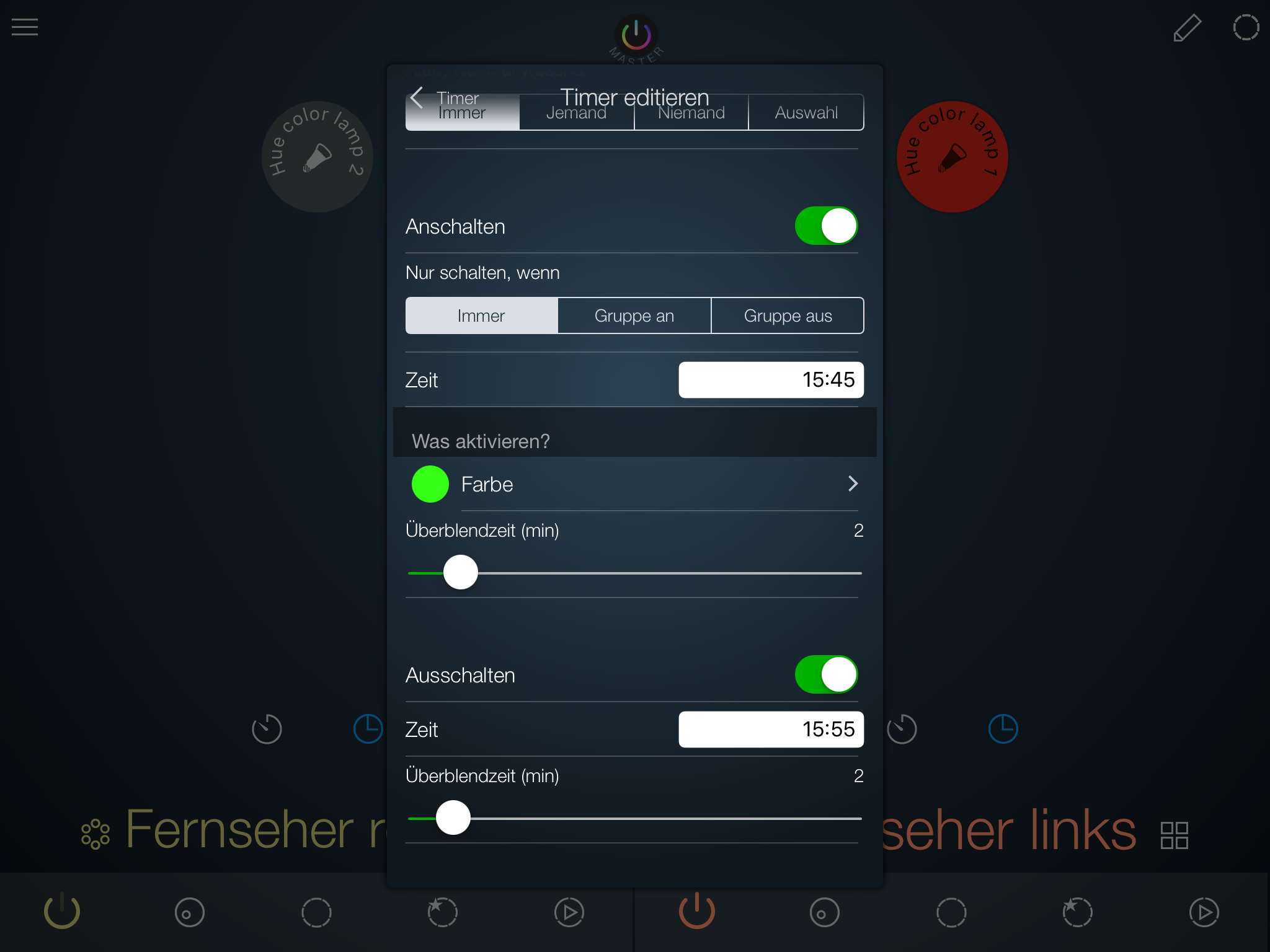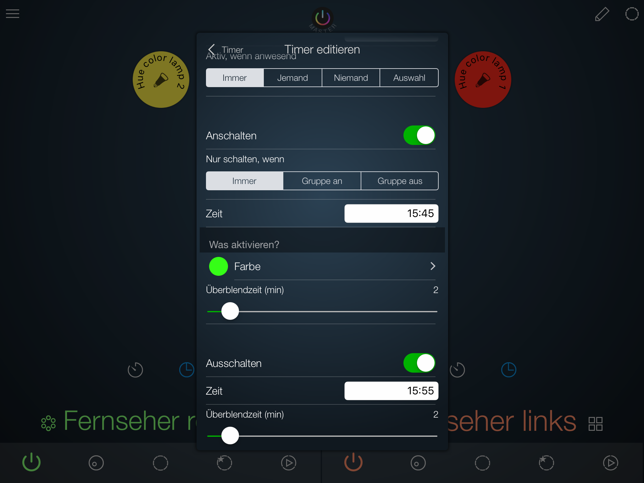 Da sind also Hue Birnen drin. Dann erstell doch einfach 3 Regeln in Home ?. Sonnenuntergang, 10 minuten vorher und 20 Minuten vorher oder so...