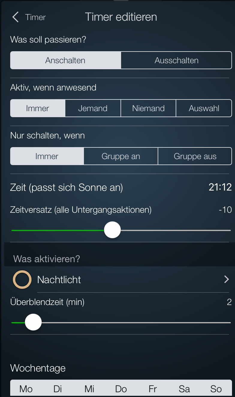 Auserdem kriegt man in HomeKit kein Faden hin. Meine Güte das es für so etwas triviales nirgends eine Funktion gibt ist schon wieder irgendwie ....naja.
