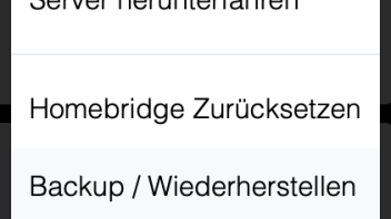Die einen oder anderen werden es schon gesehen haben: das Web-UI von homebridge-config-ui-x bietet die Möglichkeit, Backups von der Homebridge-Konfiguration zu machen. Wer es nicht kennt: oben rechts gibt es ein Menü mit drei Punkten, und darunter gibt es den Menüpunkt Backup/Wiederherstellen.