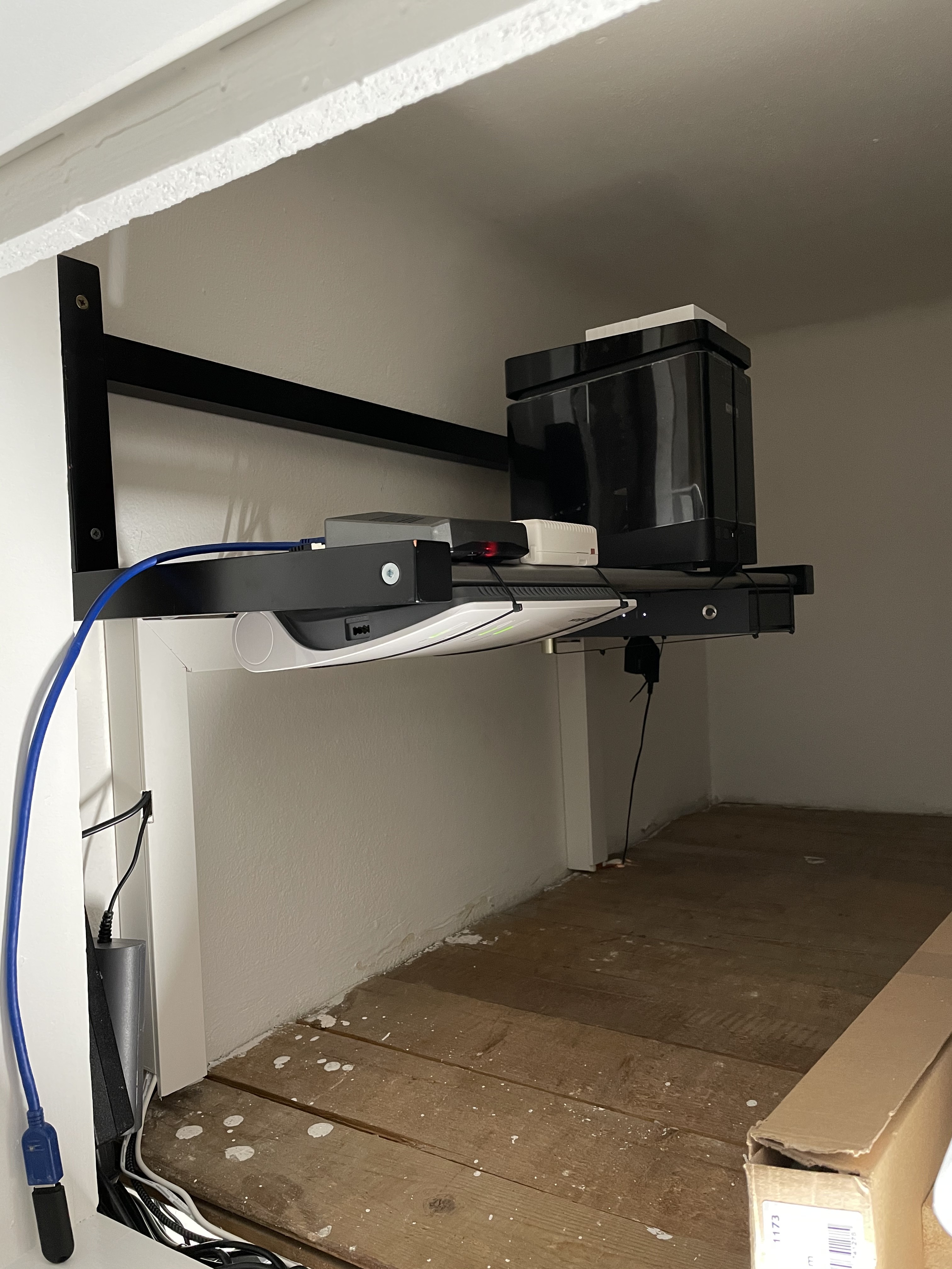 Jetzt wo ich umgezogen bin, hab ich nun auch endlich eine âEckeâ fĂŒr den ganzen Netzwerkâkramâ. Ganz modern auf einer umgedrehten IKEA Garderobeđ€Ł (war ein fehlkauf und eben anders âverwurstetâ).