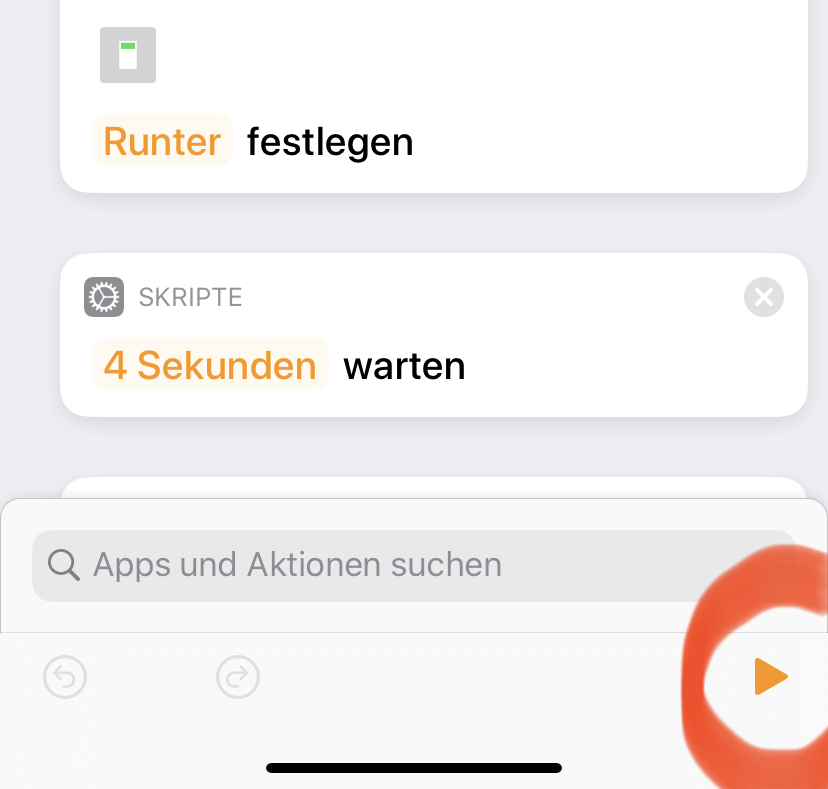 Nun noch mal auf den Punkt bei zu Hause steuern (in dem Kurzbefehl) auf das zu steuernde Gerät klicken, kurz deaktivieren und gleich wieder aktivieren. Dann das ganze speichert und noch mal den Test machen. Der sollte dann grün, und somit erfolgreich sein.