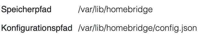 Konfigurationspfad /var/lib/homebridge/config.json