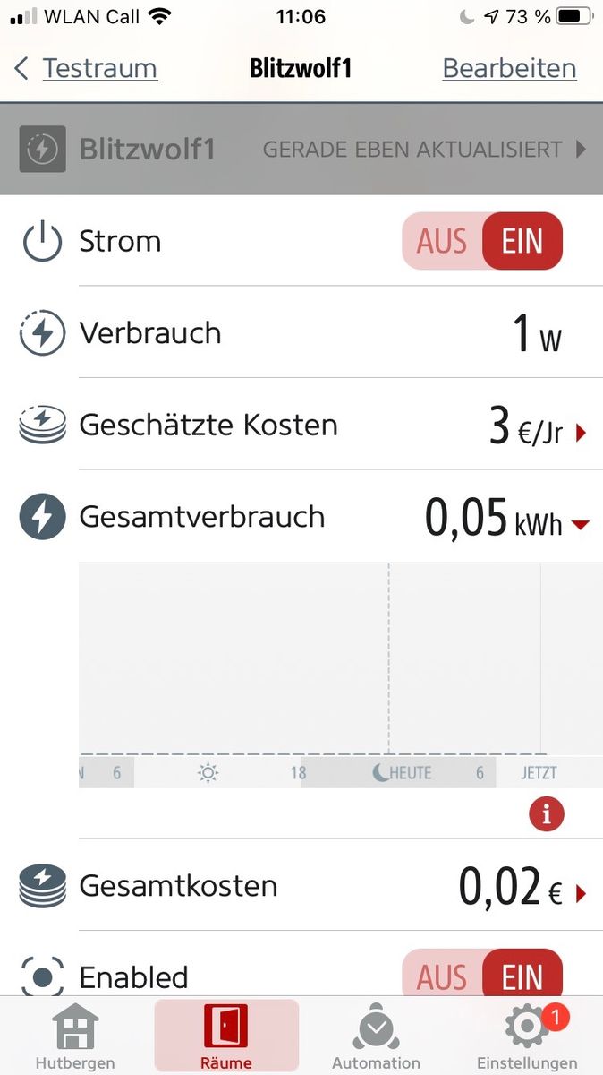 Das ist z.B. ein Blitzwolf Zwischenstecker der über Zigbee mit dem Conbee Stick über das HUE-Hombridge Plugin angebunden ist. Genauso geht es auch mit den Fritz DECT Steckdosen wenn die über das Fritz Plugin in Homebridge sichtbar sind. Von Gosund habe ich z.B. auch eine WLAN Steckdose welche auch die Strommessung beherrscht.