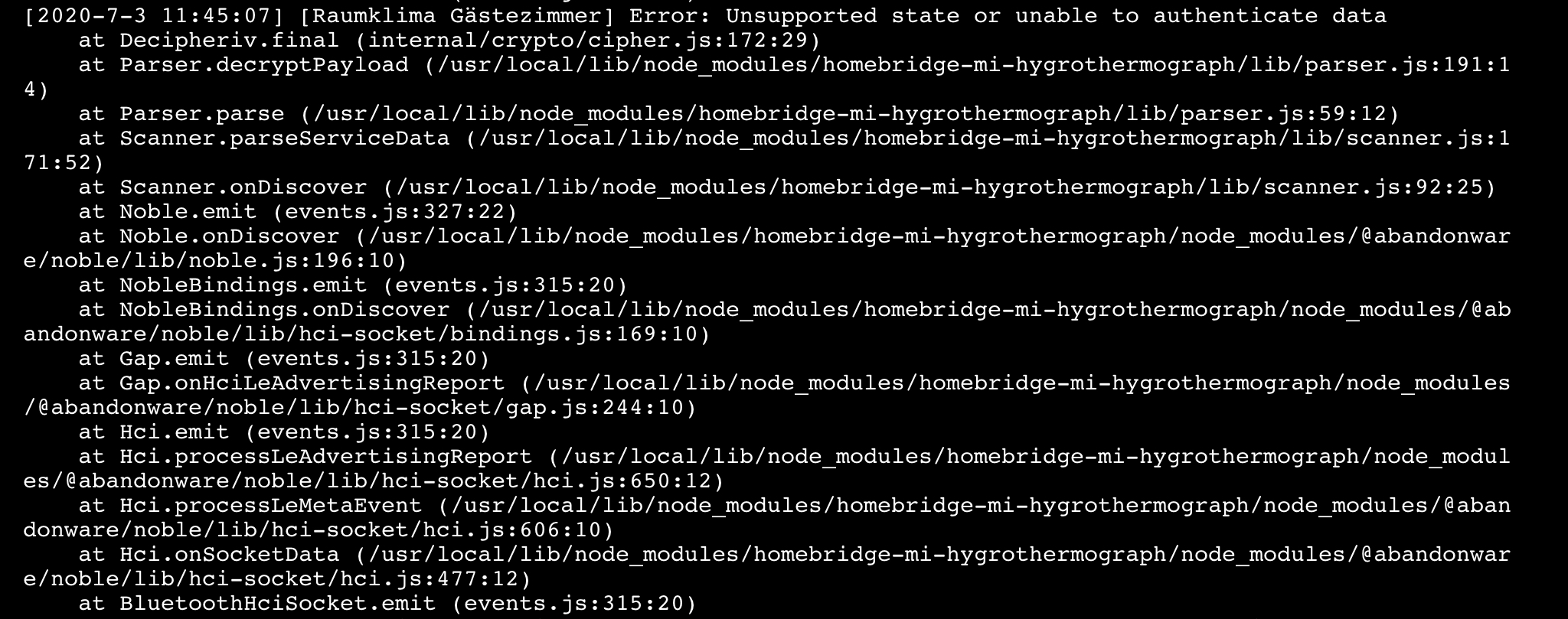 [6/30/2020, 8:54:53 AM] [Raumklima] [12:3a:45:67:89:b0] Timed out, last update: 2020-06-30T05:54:51.468Z