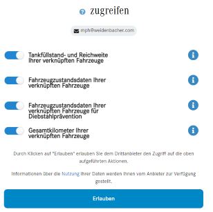 Dann über http://172.xxx.xxx.151:3001 mich über deinen Absprung bei Mercedes angemeldet und den Zugriff für Drittanbieter bestätigt. Es kam dann auch der