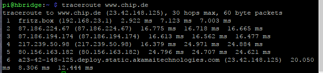 von raspi (da heist es trceroute http://www.chip.de)