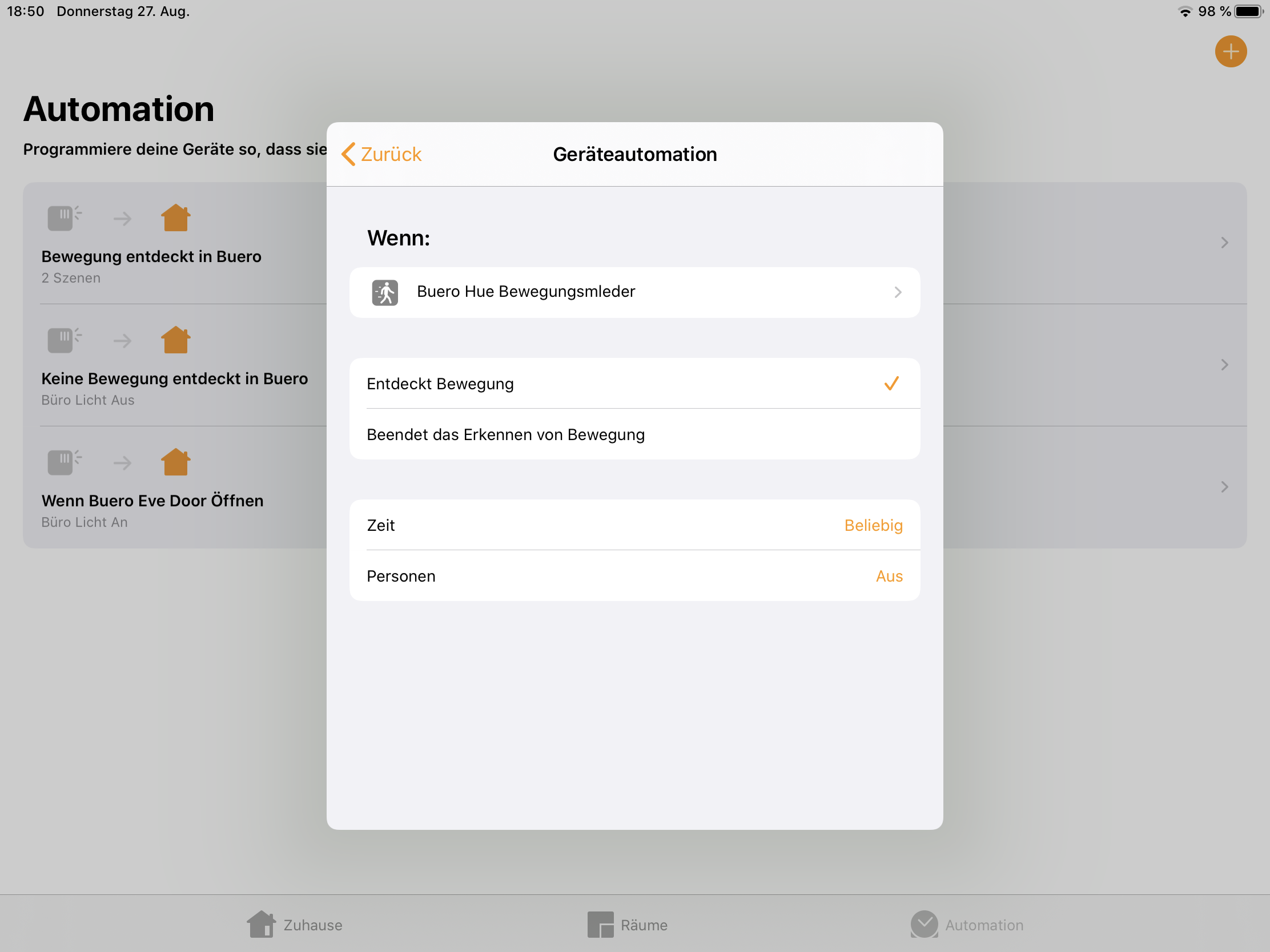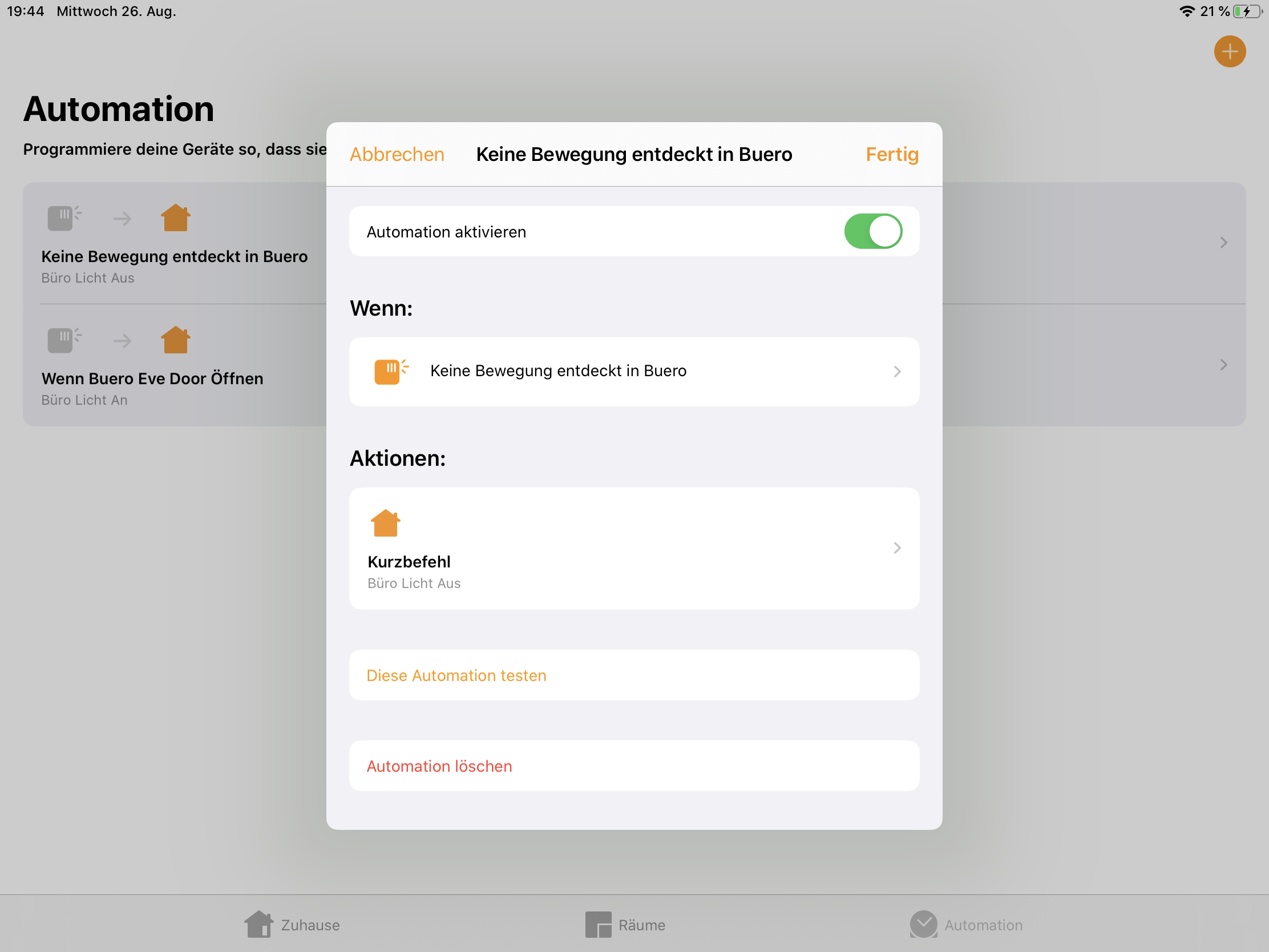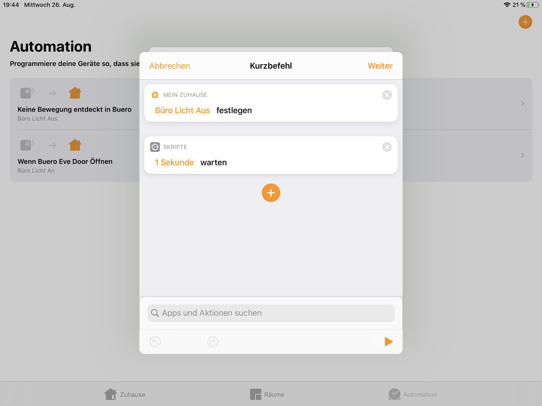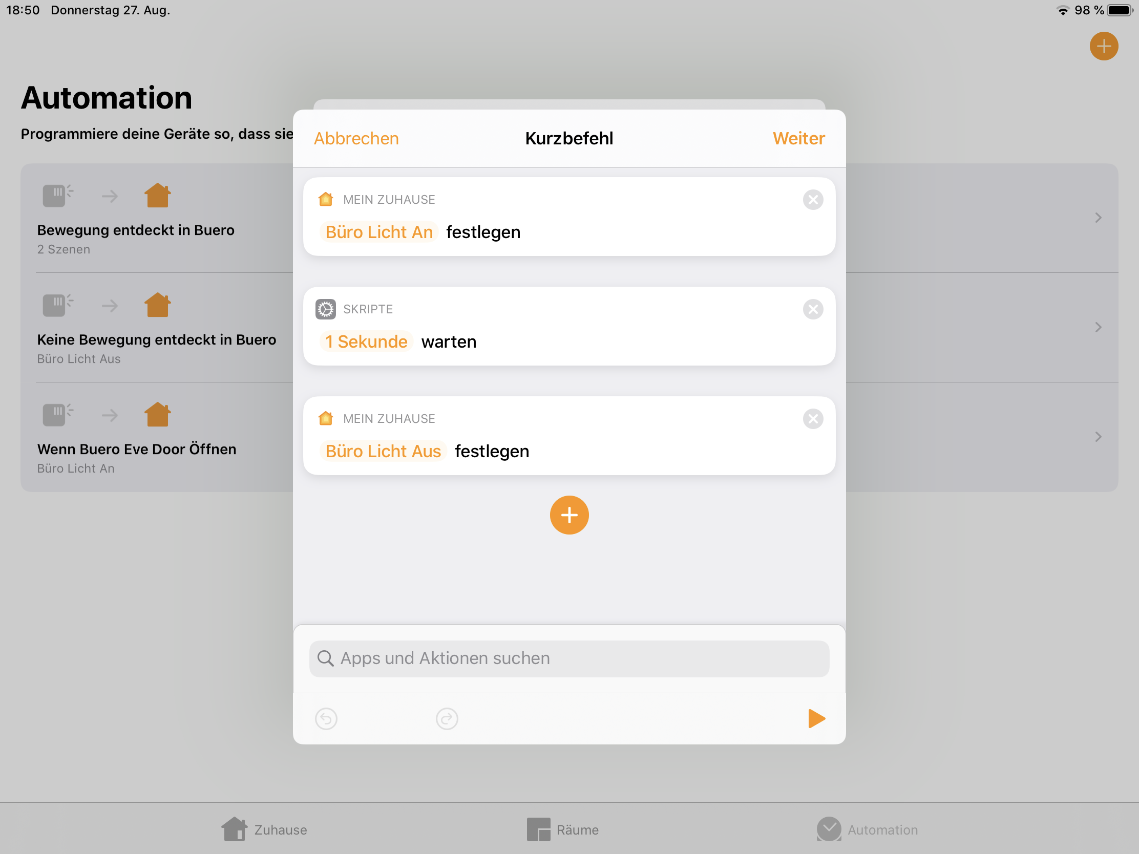 Folgendes möchte ich gern über die Home App steuern.