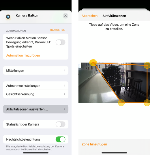könnt Ihr in der Homekit App die Aktivitätszonen festlegen?