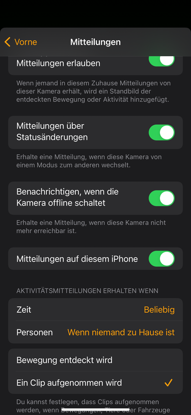 Ich musste übrigens in der App die Bewegungserkennung aktivieren. Und in Homekit nur die Benachrichtigung aktivieren, wenn ein Clip aufgenommen wird (und das passiert innerhalb der Aktivitätszonen, sonst bekommt man ständig Benachrichtigungen, auch wenn die Cam außerhalb der Zonen Aktivitäten wahrnimmt)