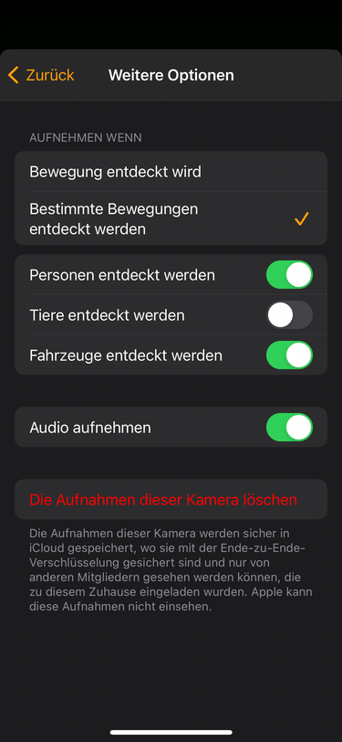 Ich bekomme zwar Benachrichtigungen über HomeKit, es erfolgen aber keine Aufnahmen.