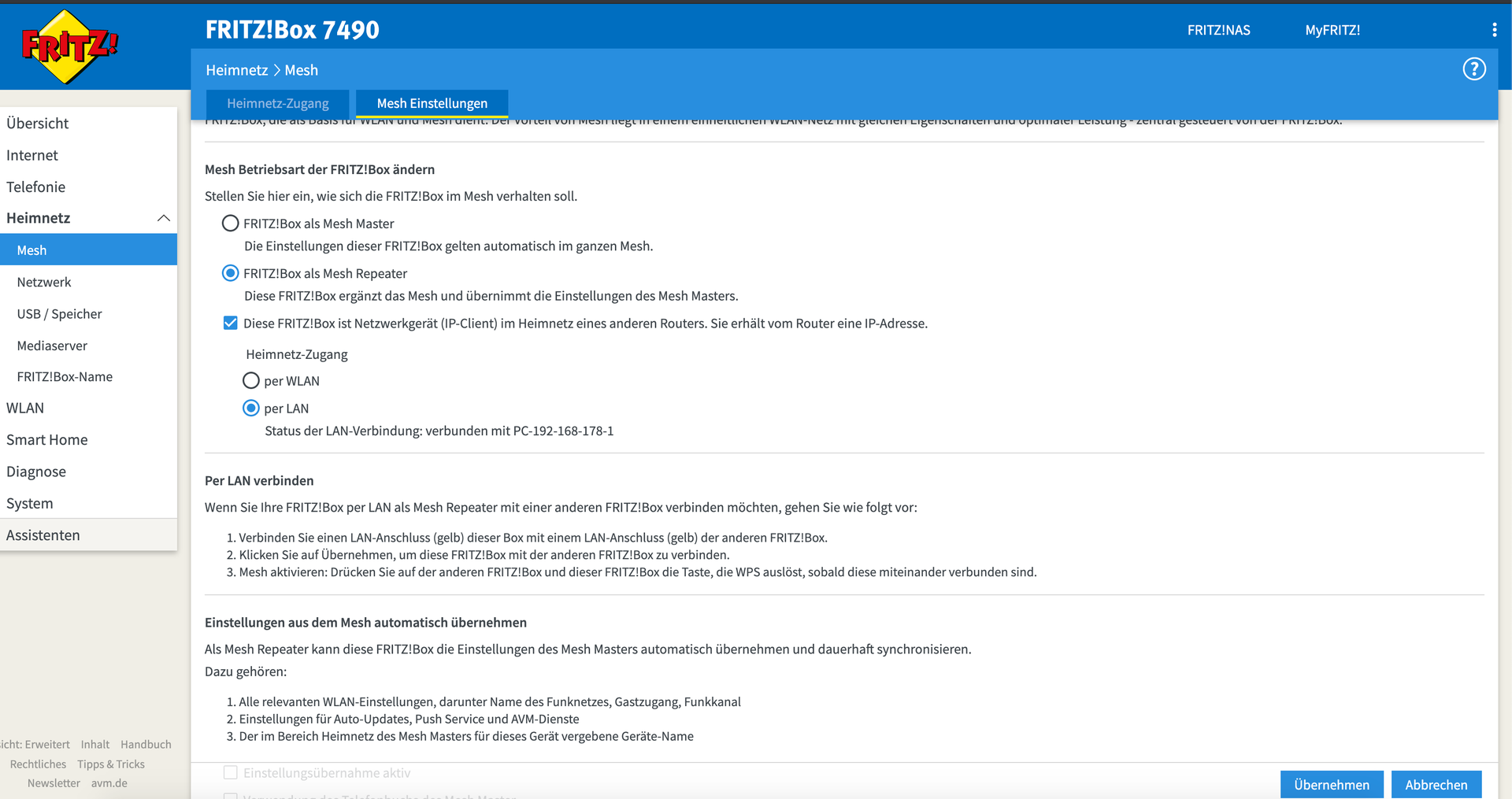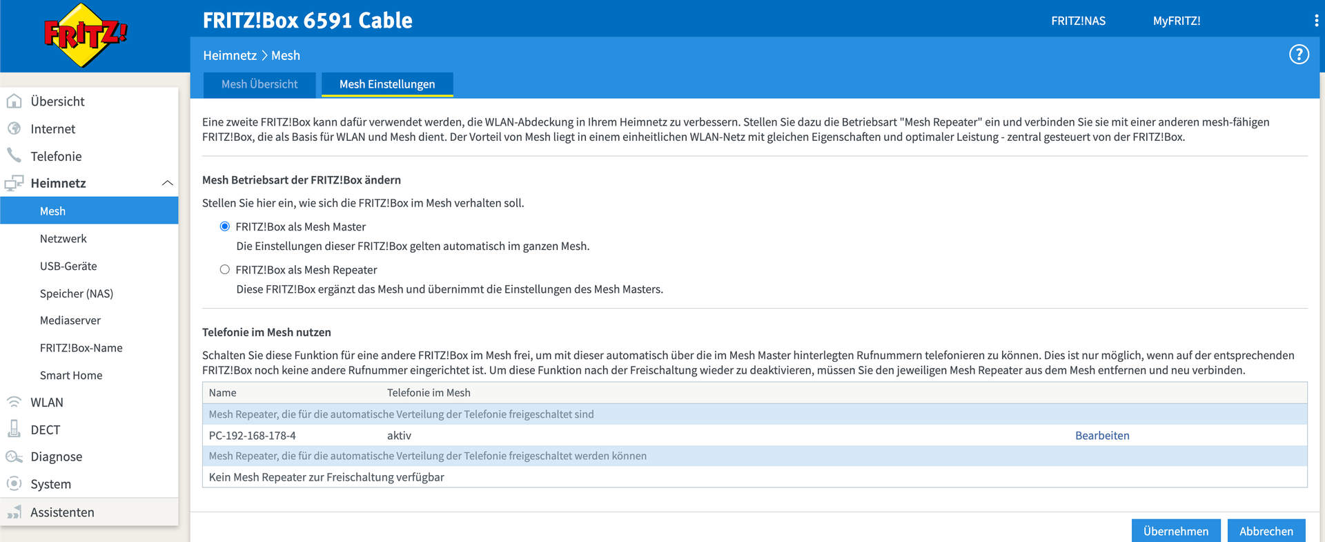 Ich habe jetzt mal die MESH funktion deaktiviert da es mir nichts bringt- eingerichtet war diese eig. nur dass ich DECT über 2 Stockwerke hinaus nutzen kann aber dies ist für DECT im Mesh nicht möglich.