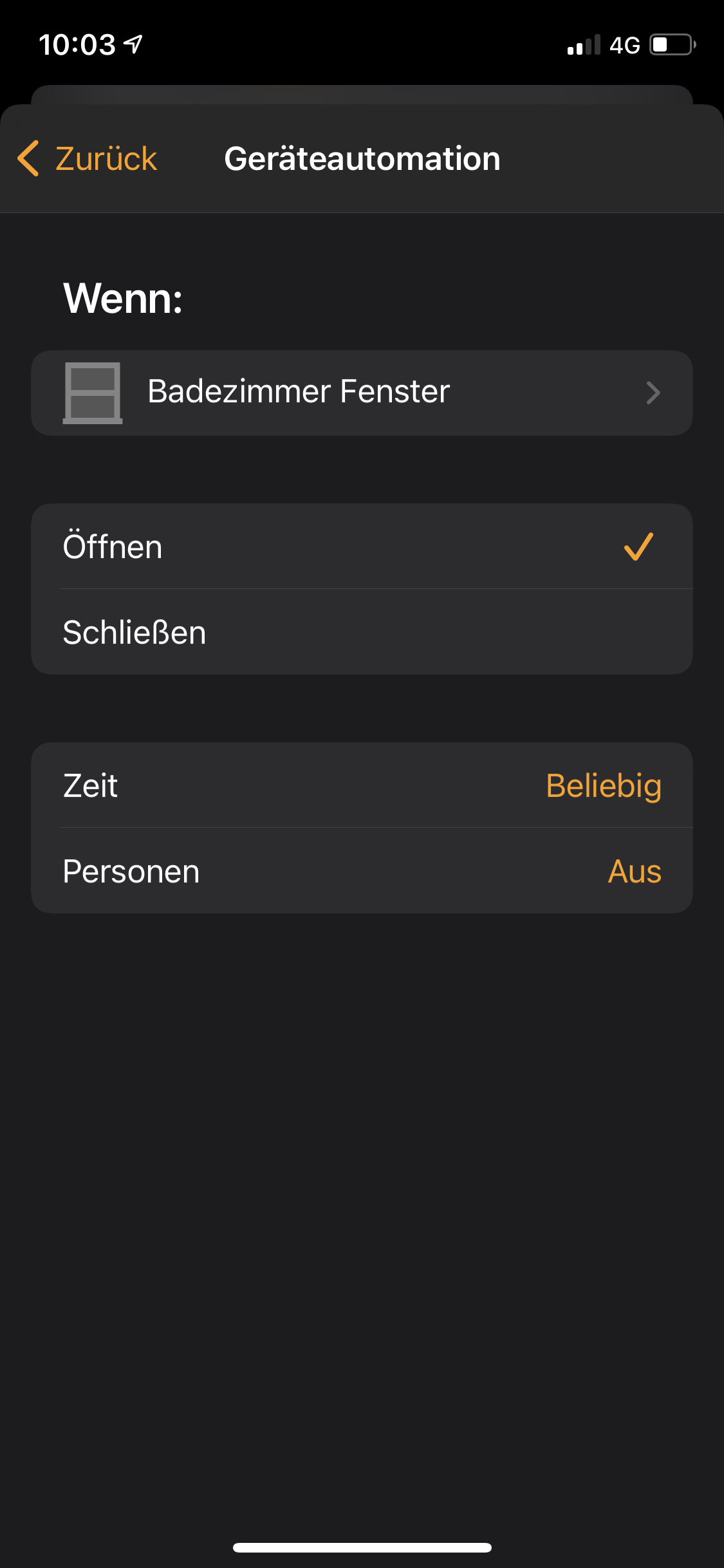 Nimm mal im Kurzbefehl das „wenn Fenster geöffnet“ raus, das beinhaltet schon deine Automation in der dann Kurzbefehl läuft.