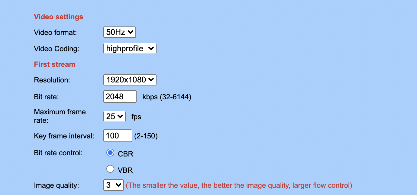 Wichtig hier ist FPS 25 und "Key frame interval". Dieser muss das vierfache vom FPS sein.