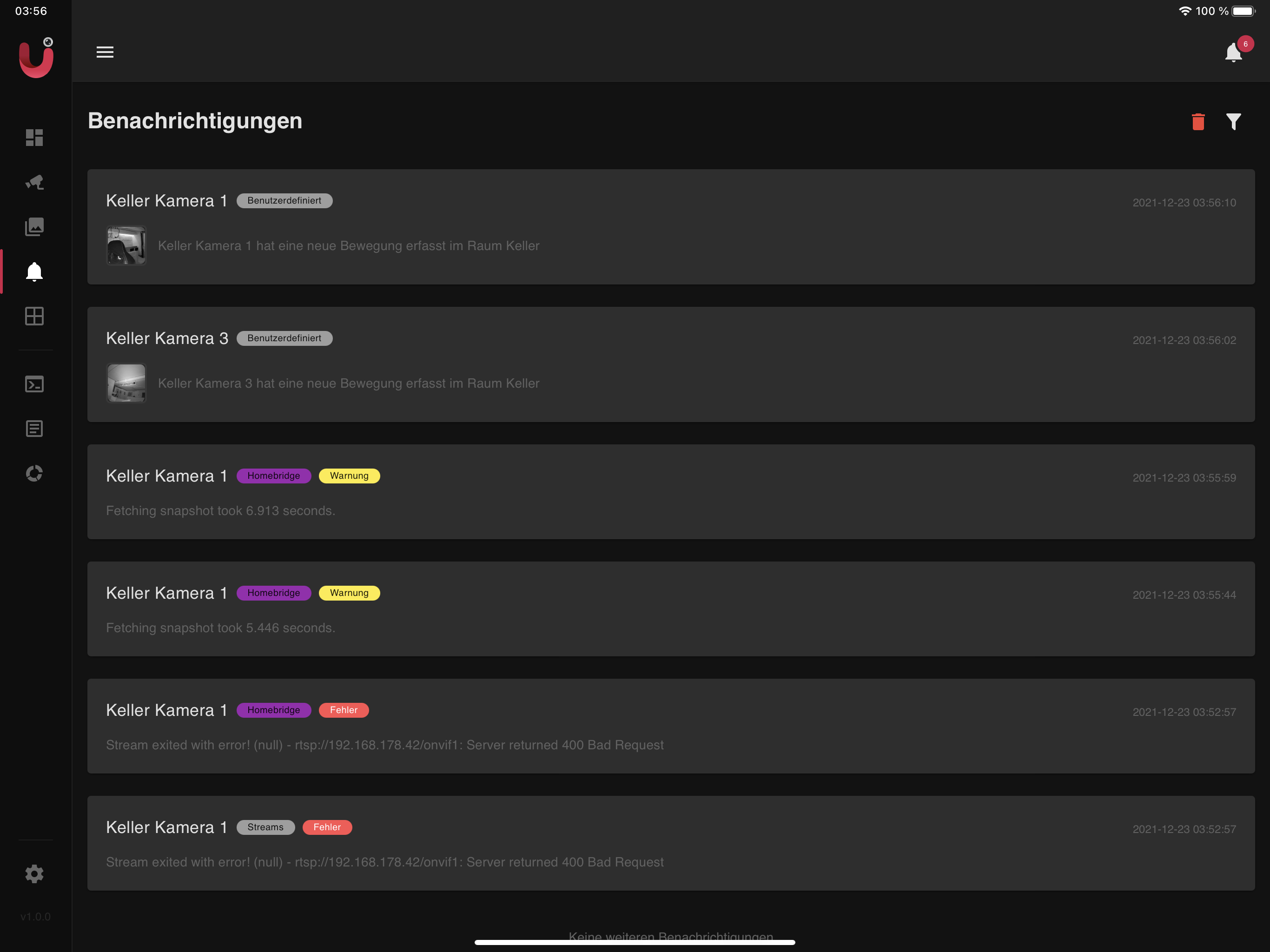 RTSP Stream ist eigentlich nicht abgebrochen. Der wird auch noch von einer Synology aufgenommen.