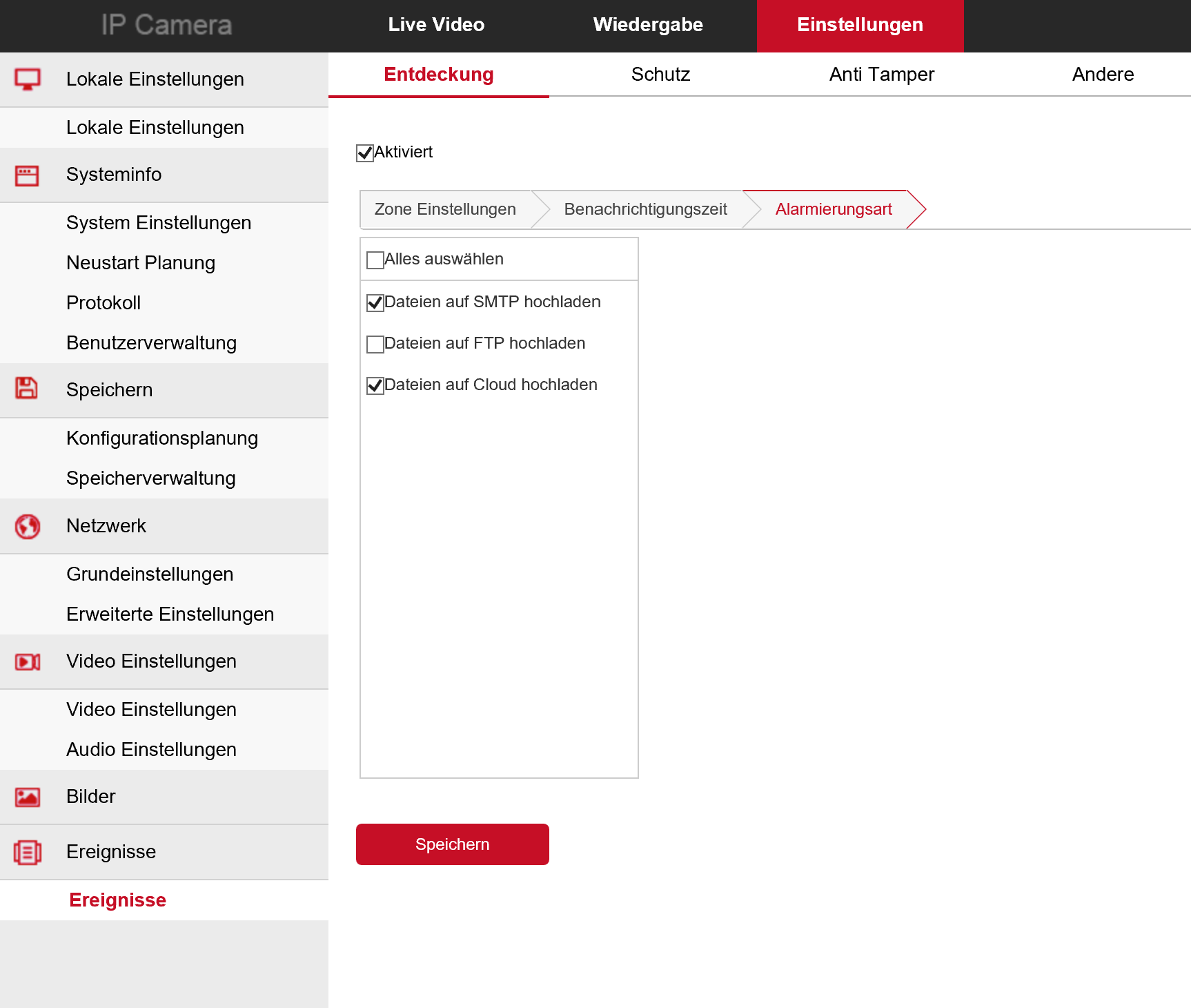 Bewegungsalarm wird ausgelöst, die Bilder auch auf der Cloud abgelegt. SMTP ist angehakt und die Prüfung von SMTP ist erfolgreich. Es sollte also ankommen.