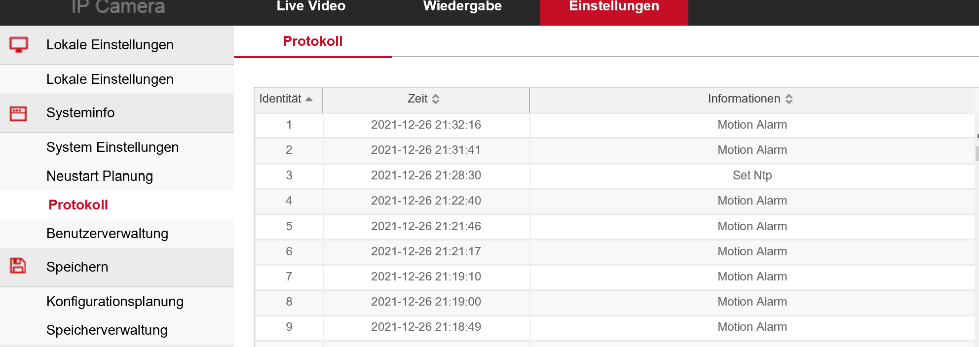 Und dann kommt nix mehr, obwohl die Bewegung an der Kamera ausgelöst wurde.