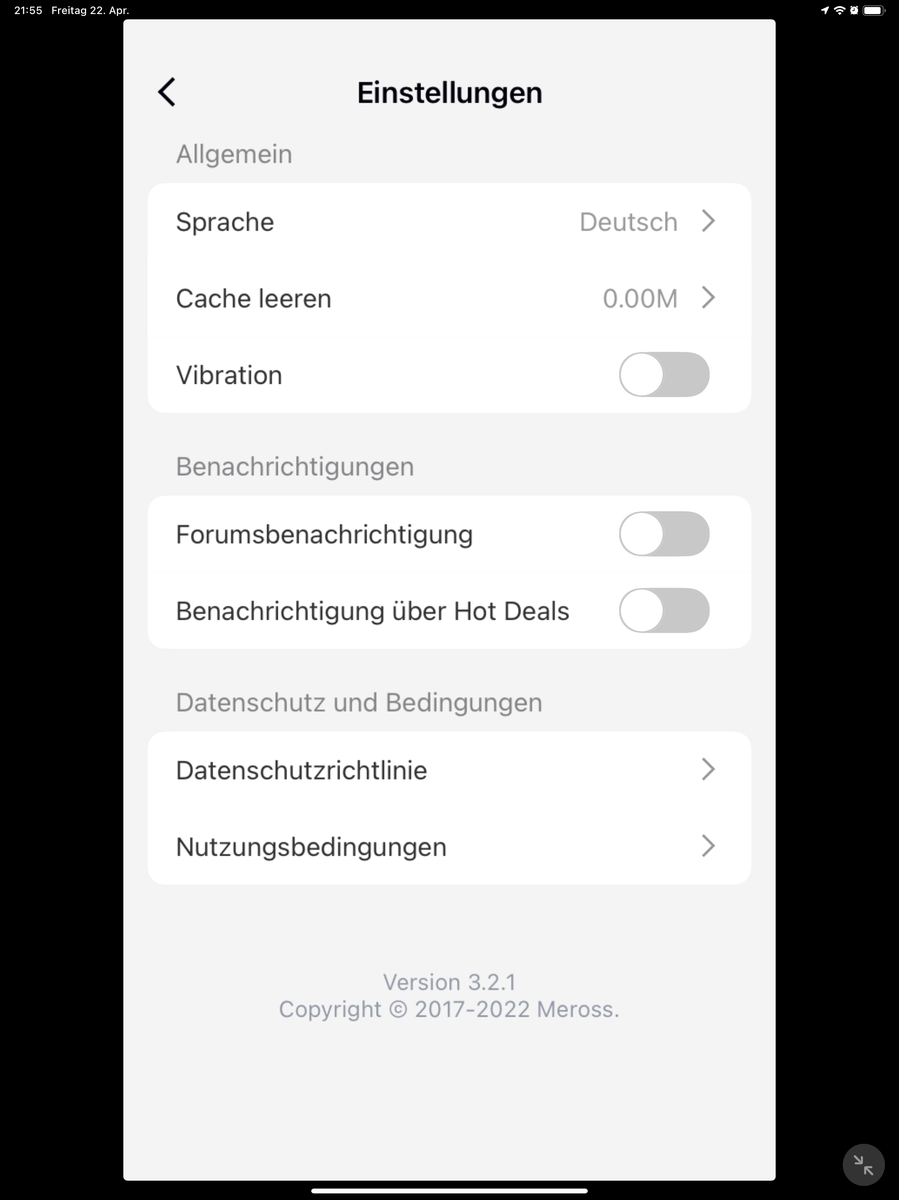 Bei mir öffnen sich dann die Einstellungen für diesen Meross-Schalter.