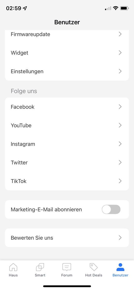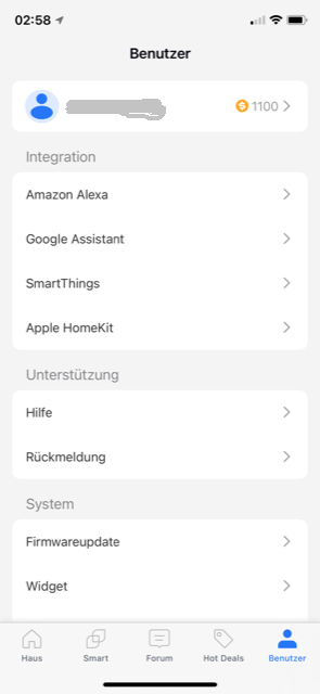 • Bei mir sieht es so aus in der Meross App unter Haus: