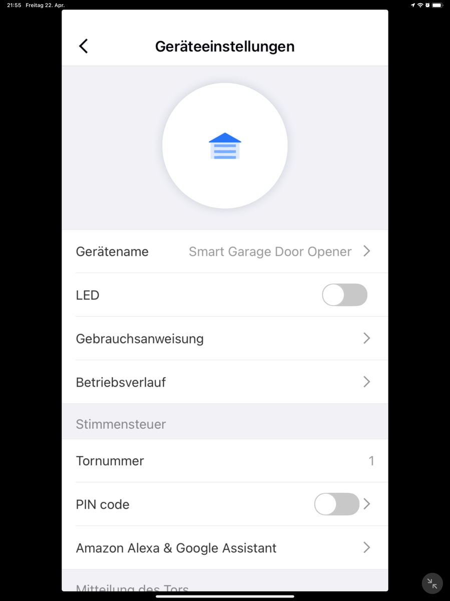 Du kannst in der App nicht das Garagentor-Icon anklicken?