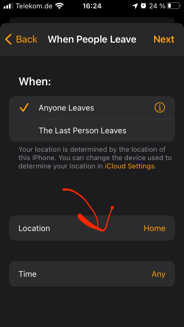 Ich finde beim Homekit immer nur die Angabe "zu Hause" verlassen ect.