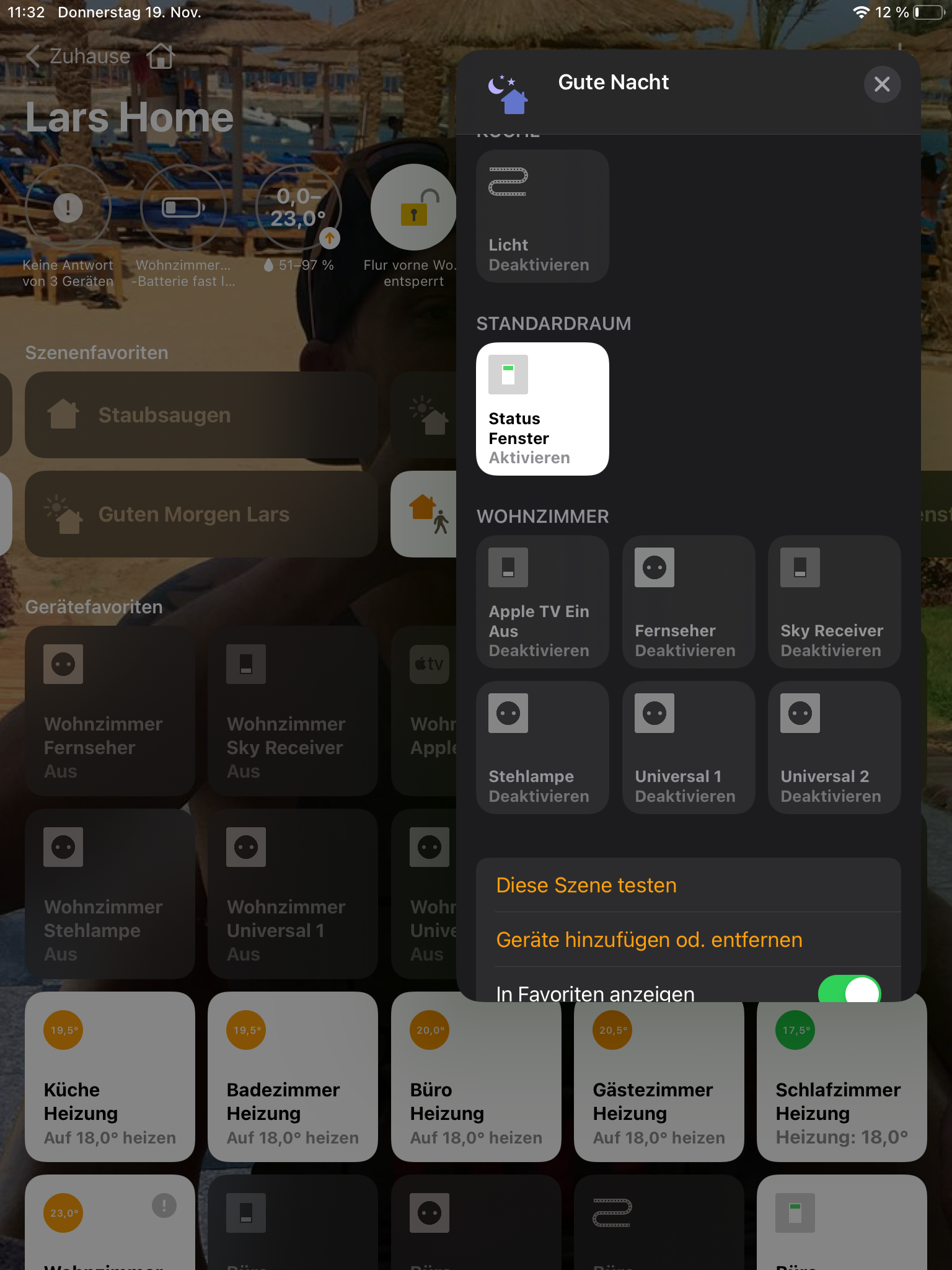 Hab dann ein Fenster aufgemacht und die Gute Nacht Szene ausgelöst.