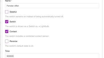 Szene Fenster Status dort den Dummy Switch hinterlegt, Timer in Eve alle 15 Minuten dann Nachricht wenn ein Fenster geöffnet ist.