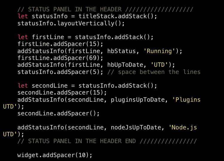 Dann nur noch den Code von GitHub aus homebridgeStatusWidget.js in der App als neues Script einfügen.