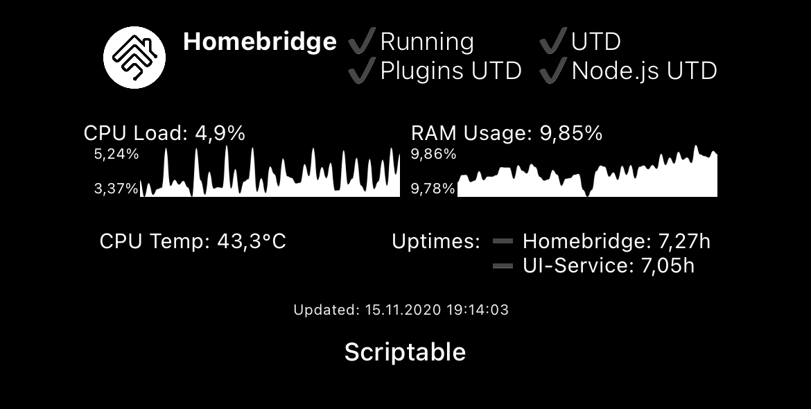 Und über ein Stapel-Widget, lässt sich gleich der Status aller Homebridges, oder Instanzen im Überblick behalten. ![]()