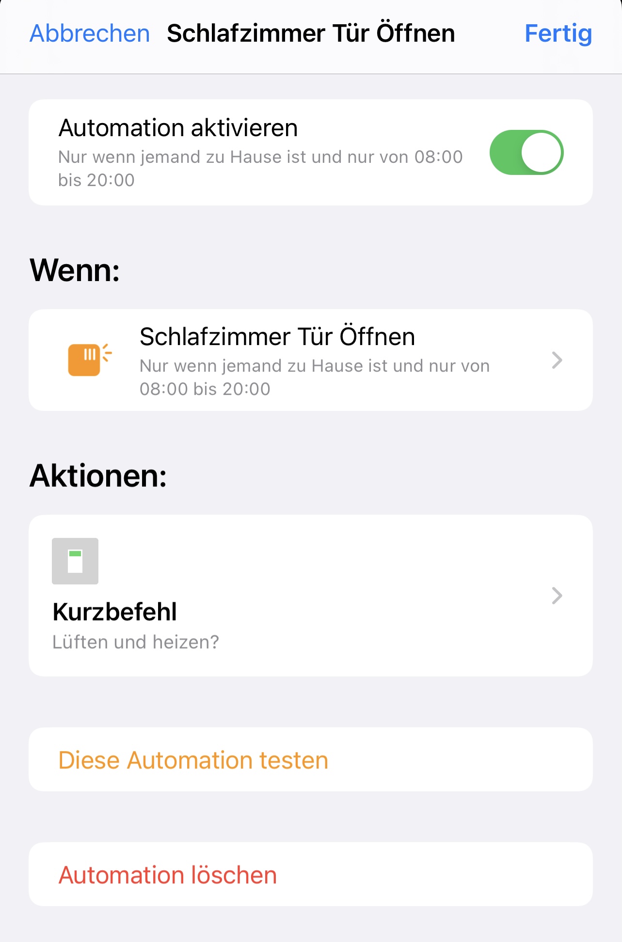 Dann sage ich Kurzbefehl erstellen. Den ersten oben lösche ich und sage dann warten
