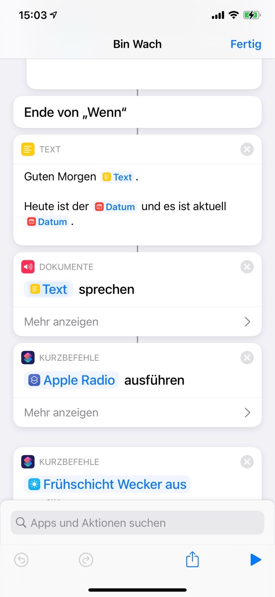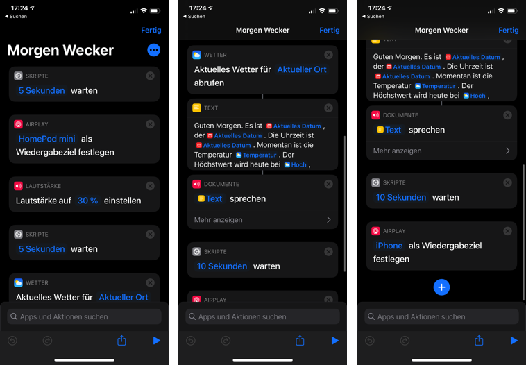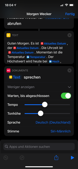 Ein neuer HomePod mini fürs Schlafzimmer ist der Anlass, einen Wecker Shortcut mit Siri Sprachausgabe über den HomePod haben zu wollen.