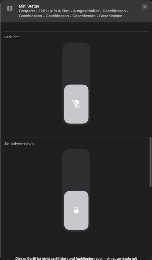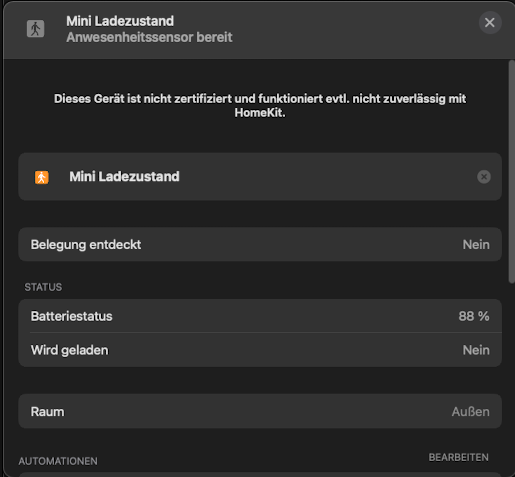 Ich habe nun also einen homekit Bewegungssensor der Mini Cooper heisst: