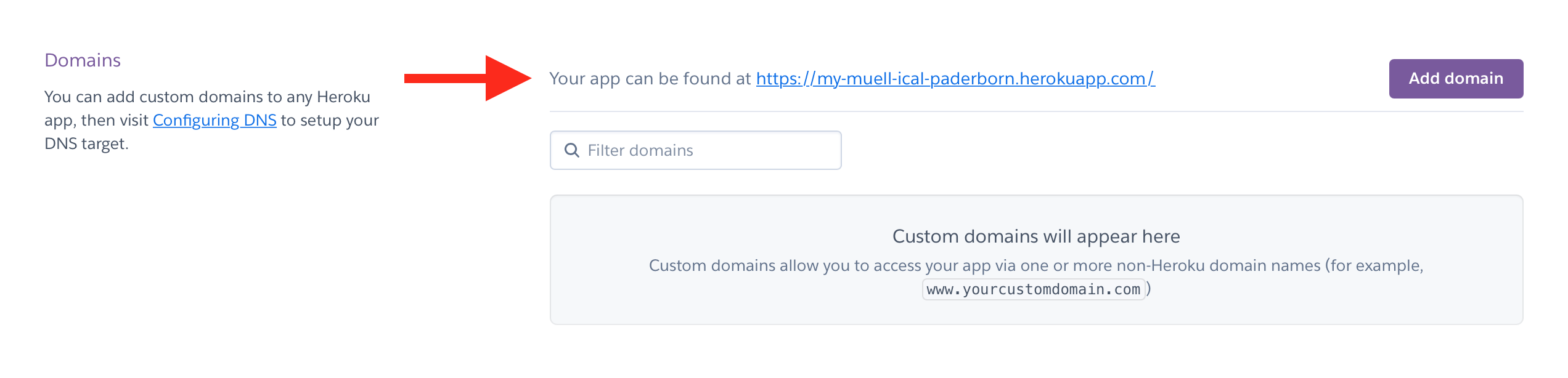 8. Heroku Domain URL kopieren:
