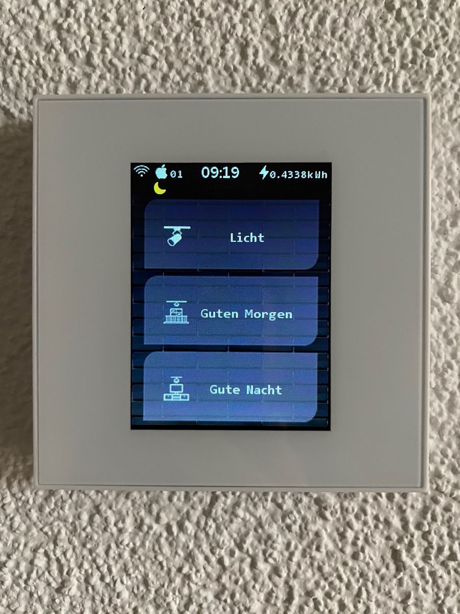 Beim Start des Schalters immer mal aufs Display tippen, dann wird das Wlan-Symbol weiß. Ist es weiß, kannst du es in Smartliving integrieren. Anschließend wieder neustarten, dann wird es wieder gelb und kann per Homekit bedient werden.