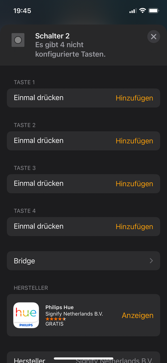 Wenn ich die Schalter über die Hue App konfiguriere, dann kann ich über die Tasten meine entsprechenden Lampen dimmen, dies funktioniert soweit auch.