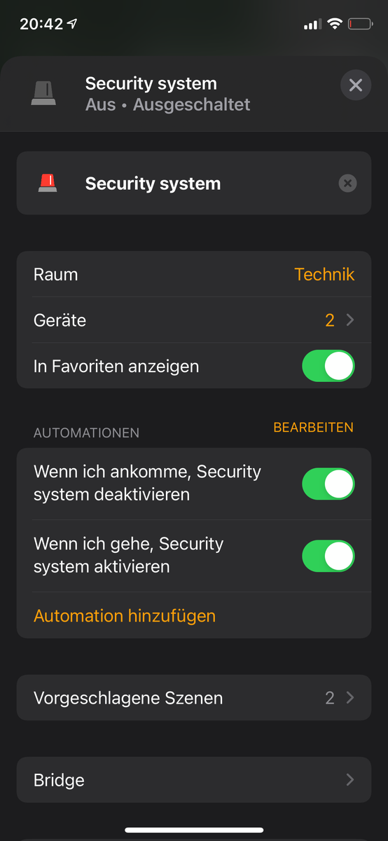 - Wenn zuHause ankommen -> schalte „Alarmanlage Automation“ AUS
