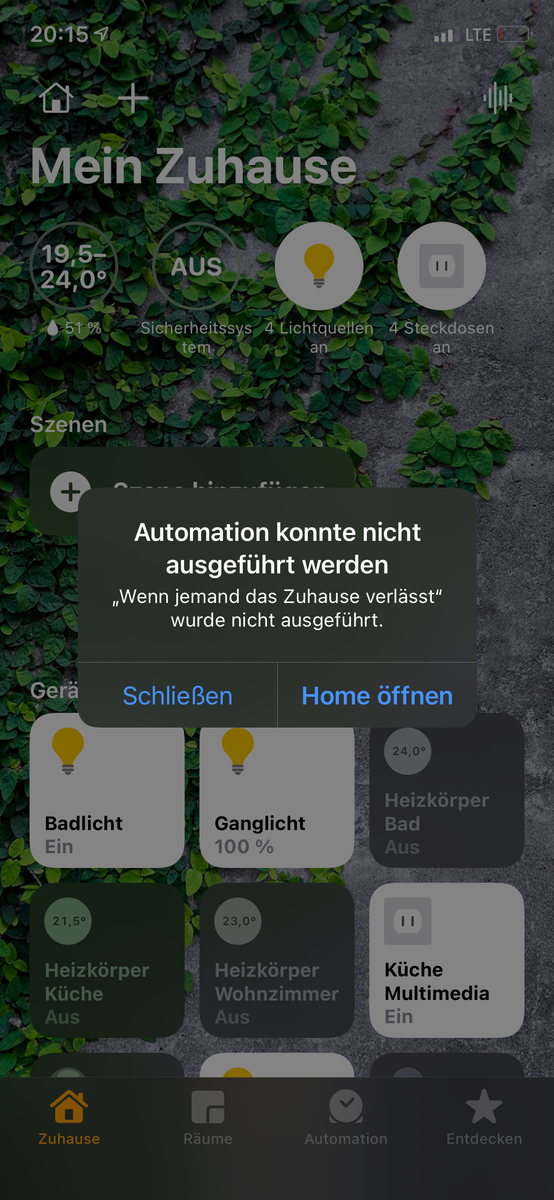 Ich bekomm in der Apple Home App immer folgende Meldung.