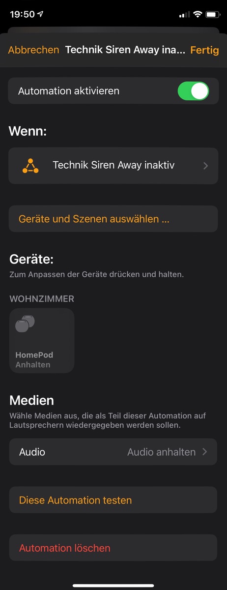 Hab folgendes Problem mit dem Tool, es kann die Automation nicht automatisch aktiviert werden wenn ich mein Zuhause verlasse und auch wieder deaktiviert werden wenn ich in meinem Zuhause ankomme.