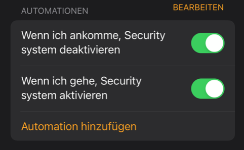 - Wenn zuHause ankommen -> schalte „Alarmanlage Automation“ AUS