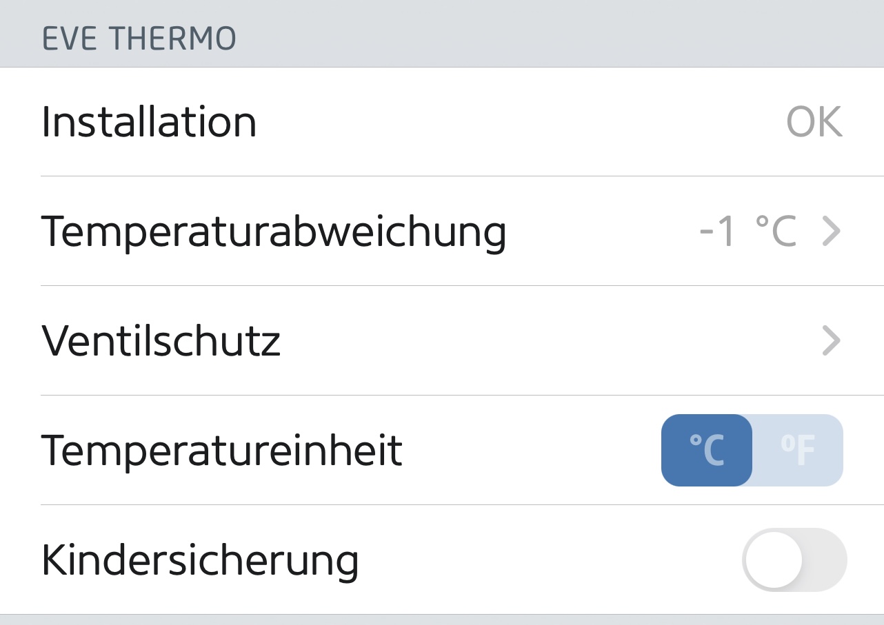 Ich habe den Eve installiert & eingerichtet. Soweit ging es gut & problemlos. Ich habe einen Zeitplan angelegt die Kopfortemperatur liegt bei 21 Grad Offset bei -1.
