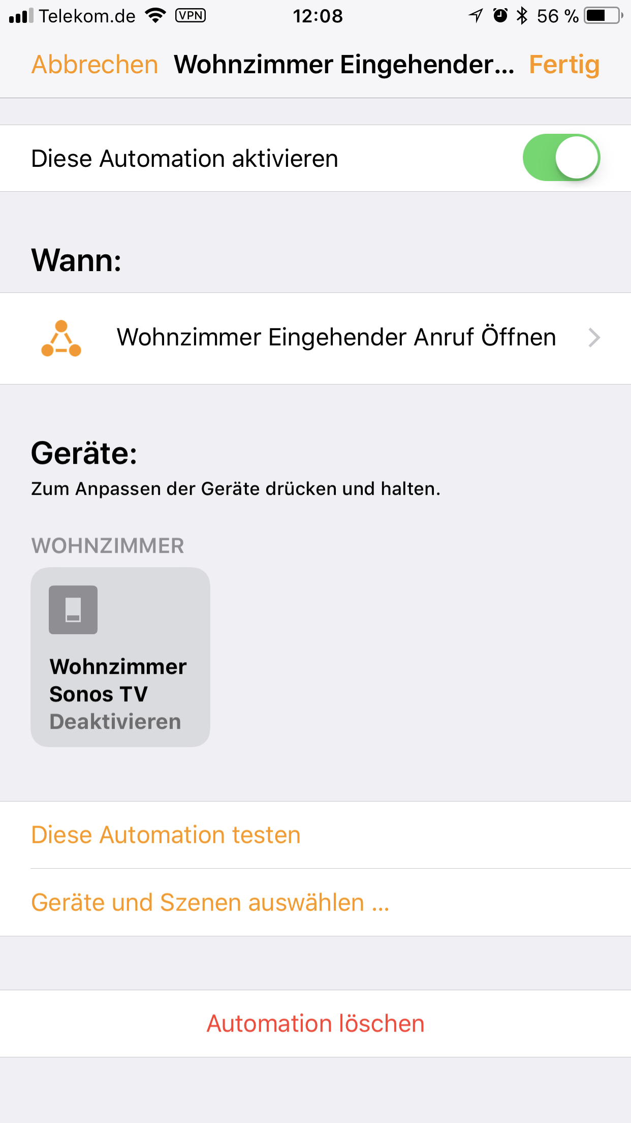 Was mich gewundert hat ist, dass ich vom iPhone weiterhin alles steuern konnte bis auf alle Automationen haben nicht funktioniert.