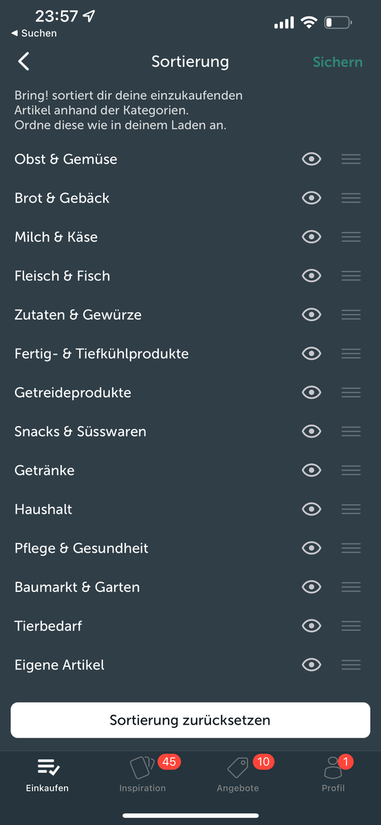 Um Bring! mit Siri verwenden zu können, musst du die Einstellungen für “Siri & Suchen” in deinen iPhone Einstellungen für Bring! aktivieren. In der Bring! App kannst du in Profil > Einstellungen > Standardliste eine Liste wählen, auf die Siri zugreift. Du kannst mit Siri Artikel auf deine Standardliste setzen mit “Füge [Artikel] zu meiner Einkaufsliste in Bring! hinzu”.