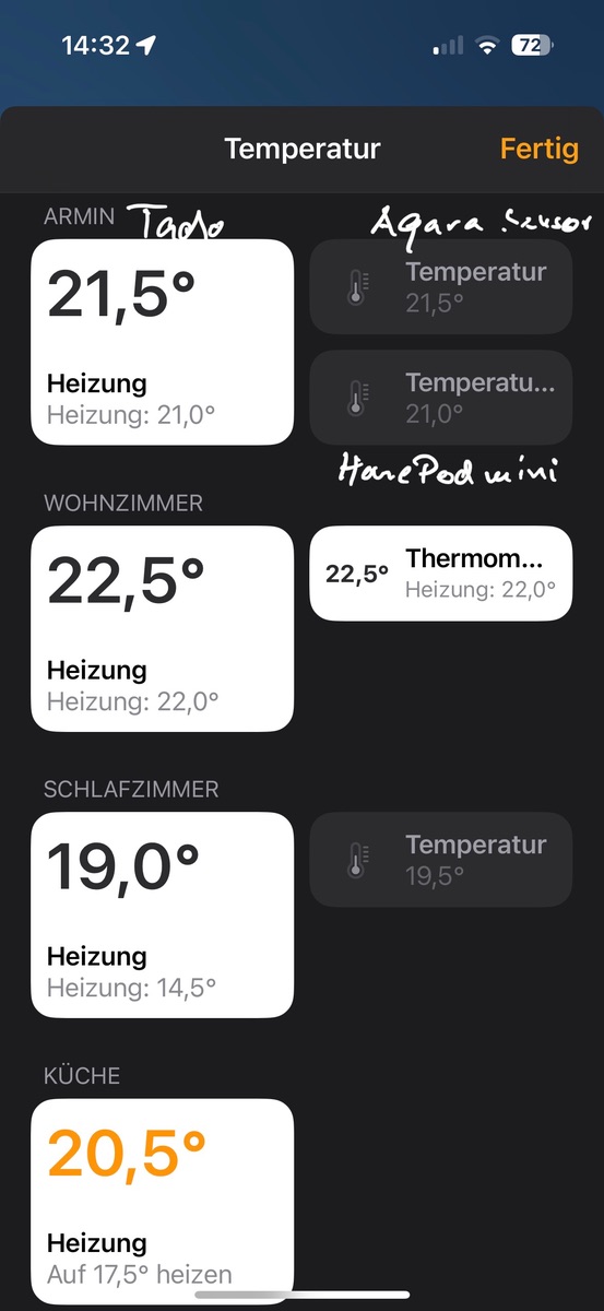 Die Werte beim HomePod mini hatte ich verglichen mit den Werten eines Aqara Sensors und einem Thermometer.