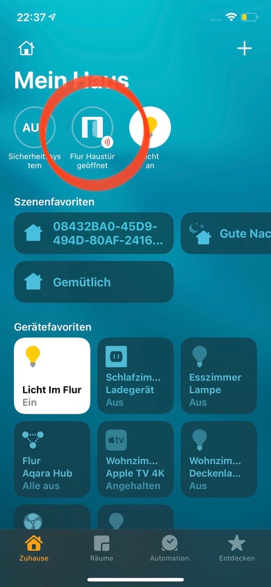Das ganze dann mit dem Aqara Hub verbunden und es wird auch in der Home App angezeigt.
