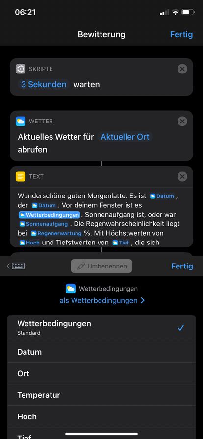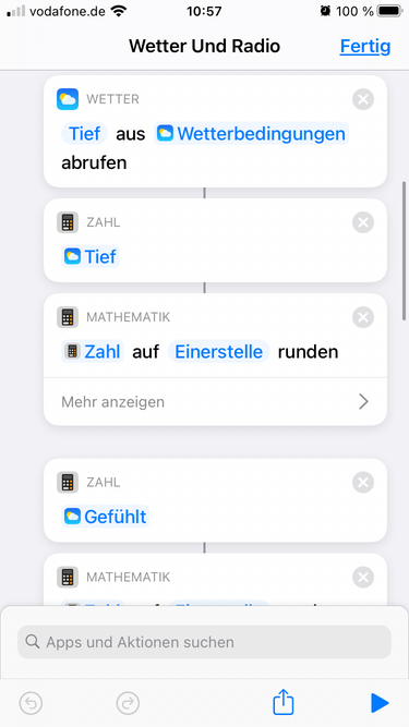 worauf ist die kürzere Variante bezogen? Du meinst auf die einzelnen Wetterdaten? Wie hast du die Werte - z.B. die Temperatur dann gerundet? Ich habe das anfangs auch etwas kürzer versucht, jedoch waren die gesprochenen Angaben dann mit gefühlt 30 Nachkommastellen usw.