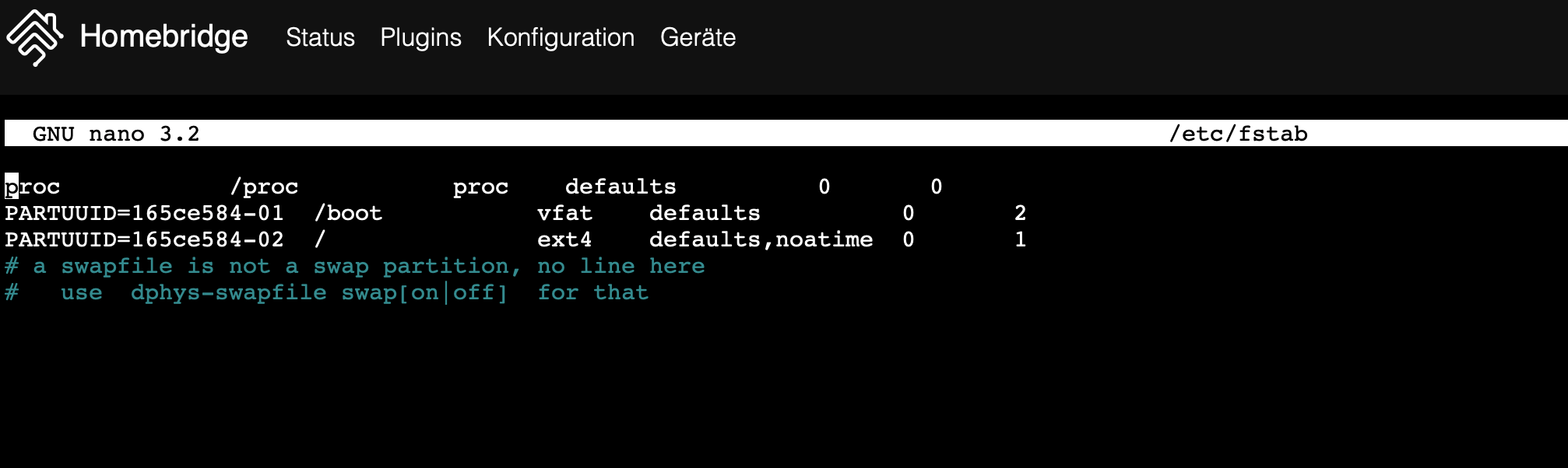 Anschließend in die fstab einfügen: