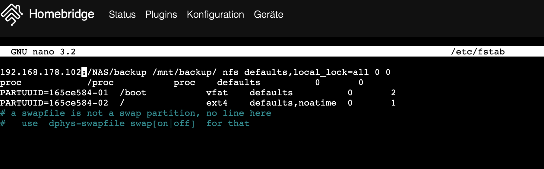 Anschließend in die fstab einfügen: